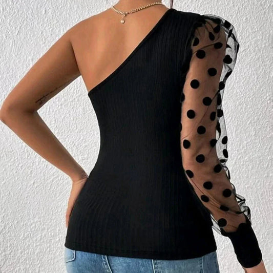 Sheer Puff Sleeve One Shoulder Top