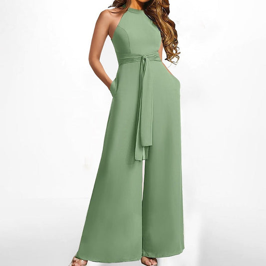 Stylish Halter Neck Wide-Leg Jumpsuit