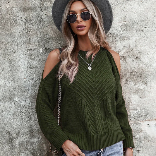 Women's Cross Neck Off-Shoulder Sweater