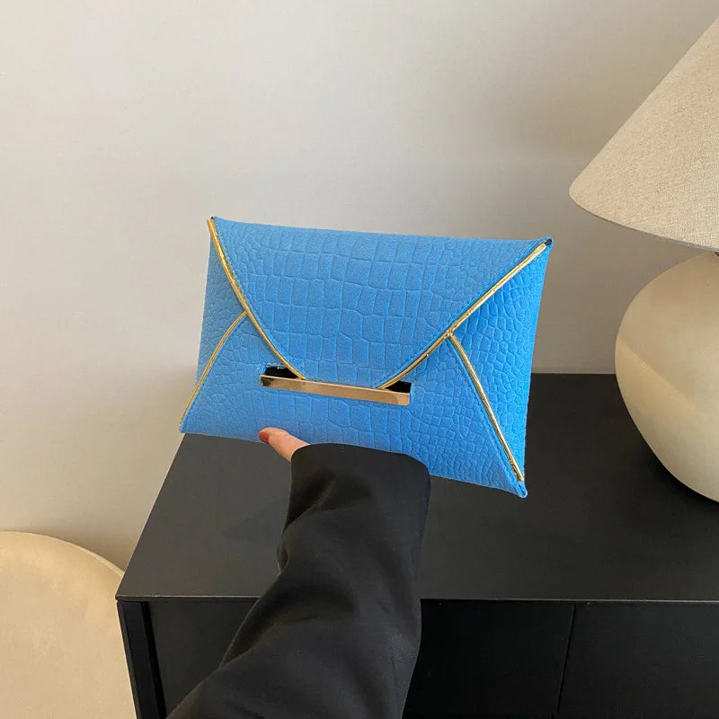 Crafted with precision, our clutch features a large capacity interior perfect for essentials. Available in eye-catching yellow, bold pink, classic black, deep green, and vibrant blue, each bag is designed to make a statement while providing practical usability. The embossed exterior not only adds an element of sophistication but also enhances durability.