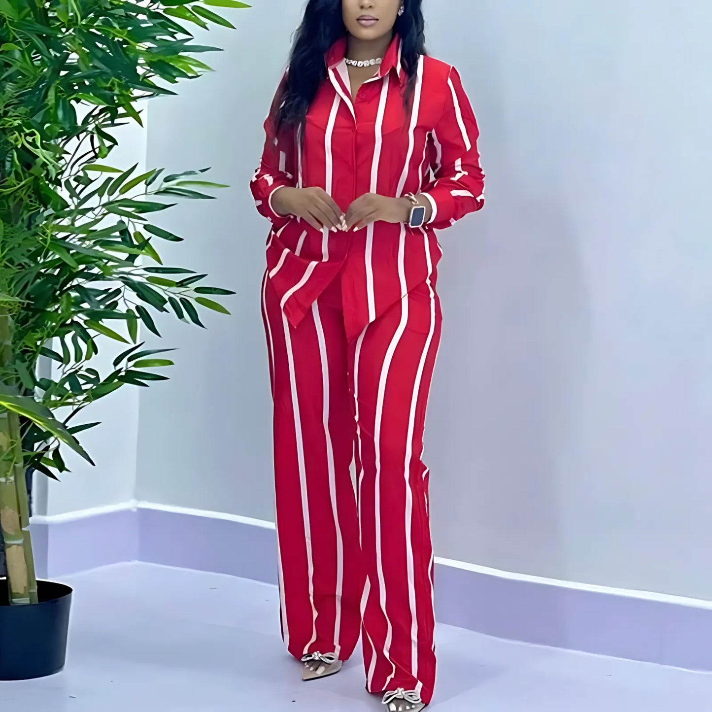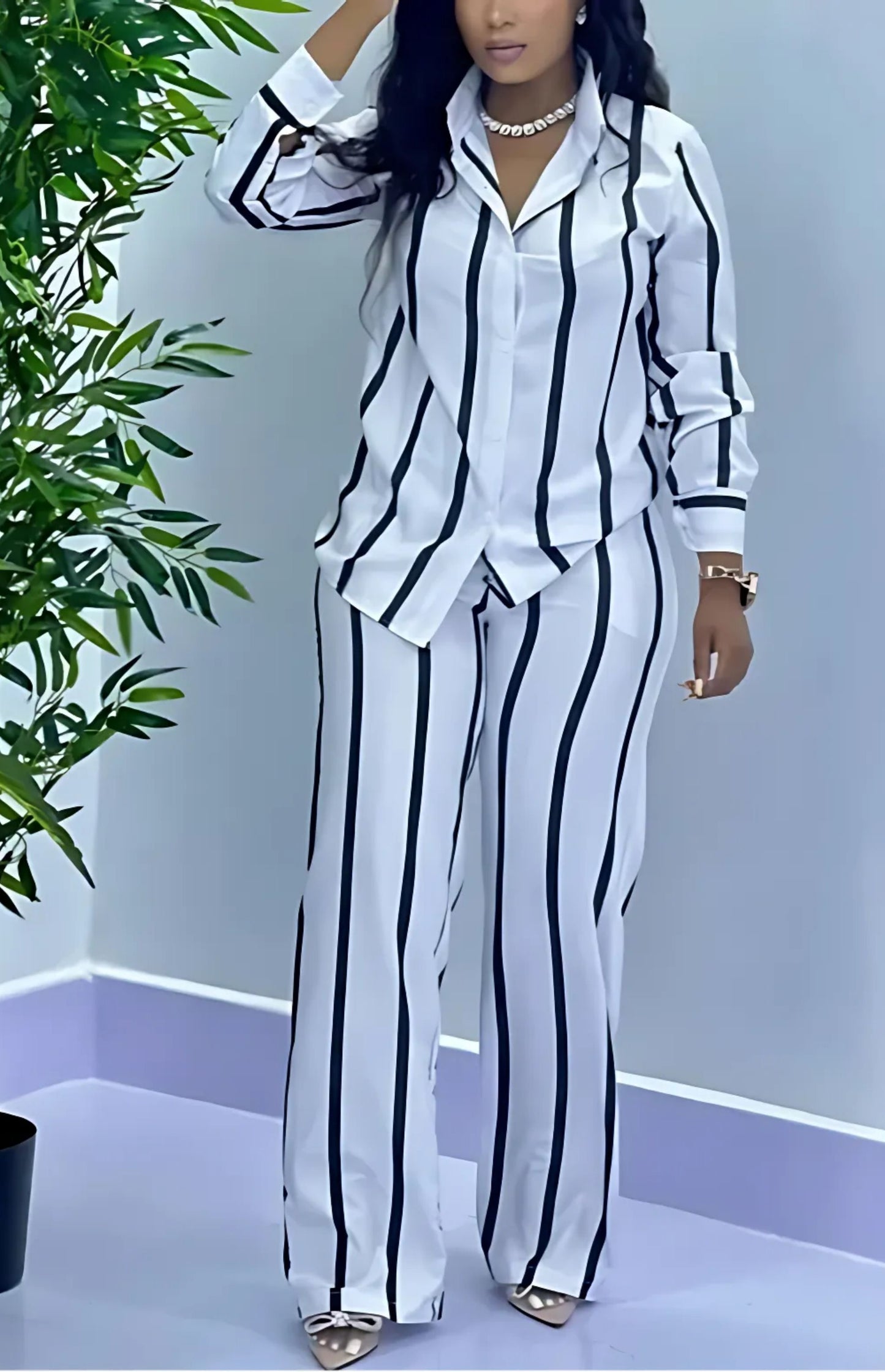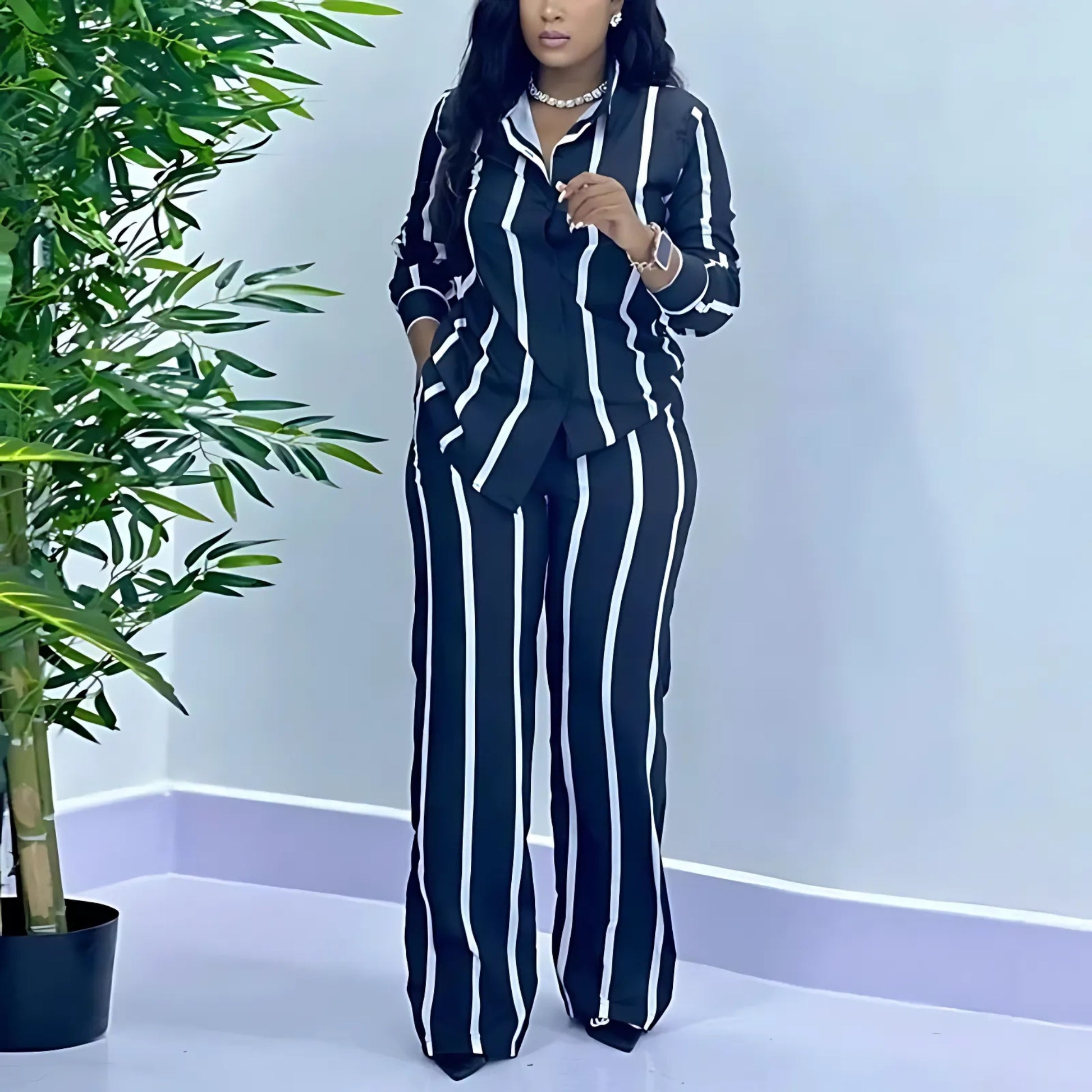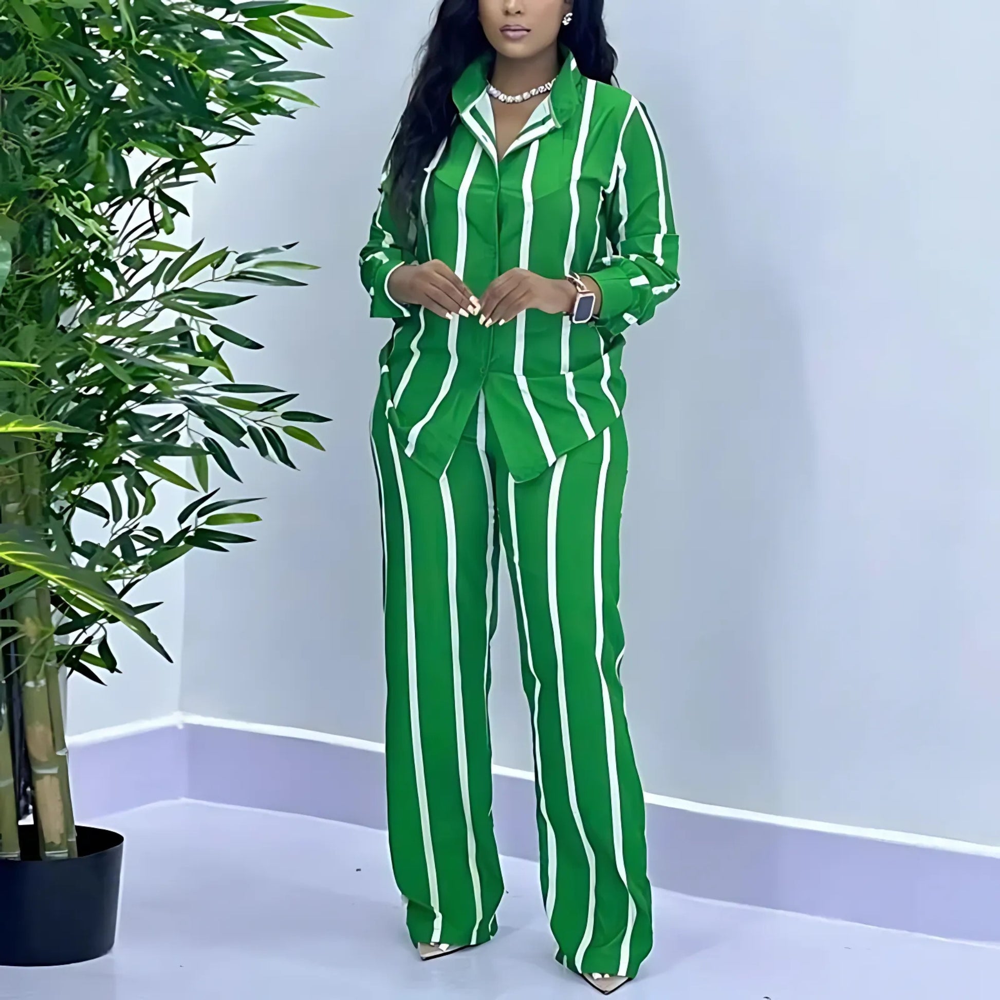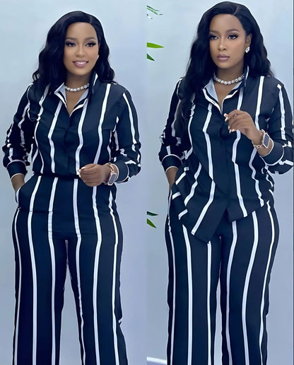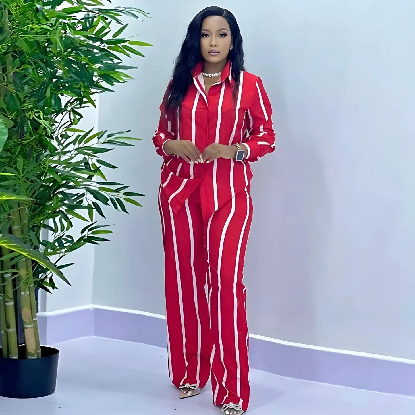 Transform your wardrobe with this stunning African fashion two piece set that perfectly blends contemporary style with cultural elegance. This versatile coordinated ensemble features a sophisticated button-up shirt paired with flowing wide leg pants, creating an effortlessly chic look that's perfect for the modern woman who values both comfort and style.