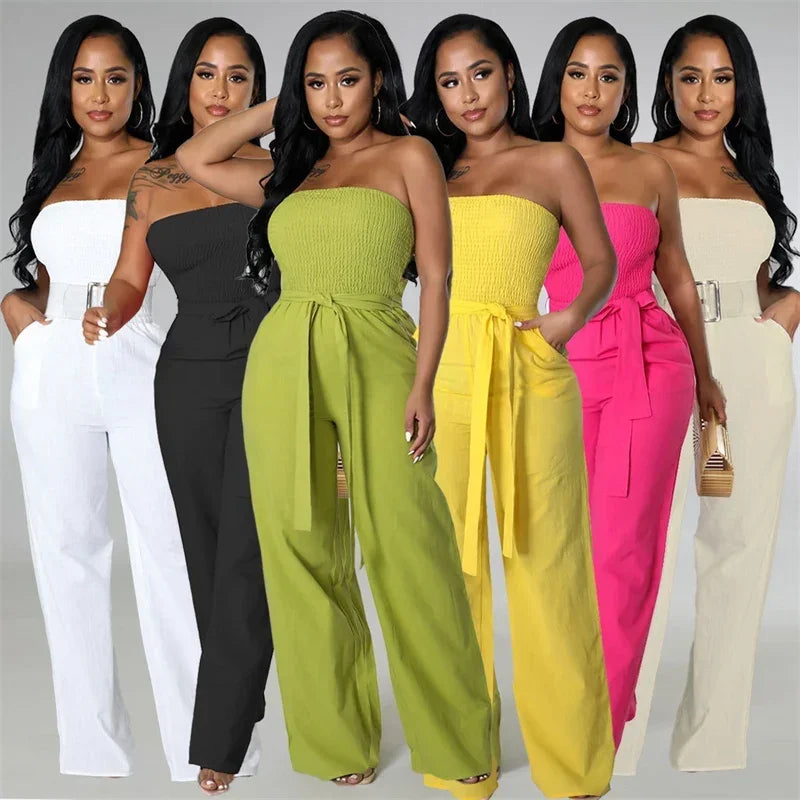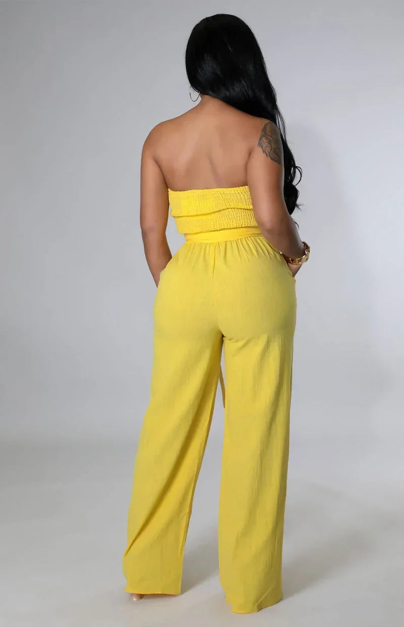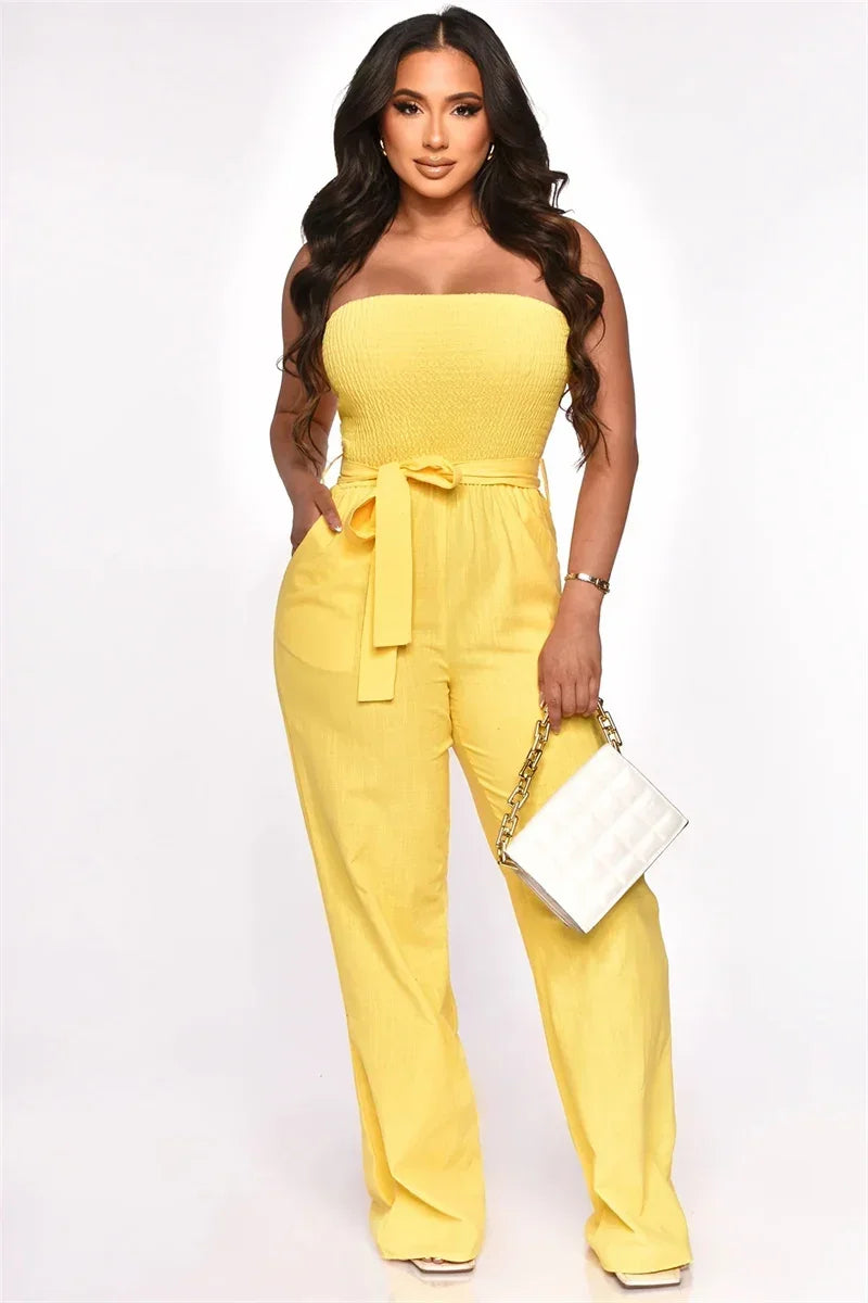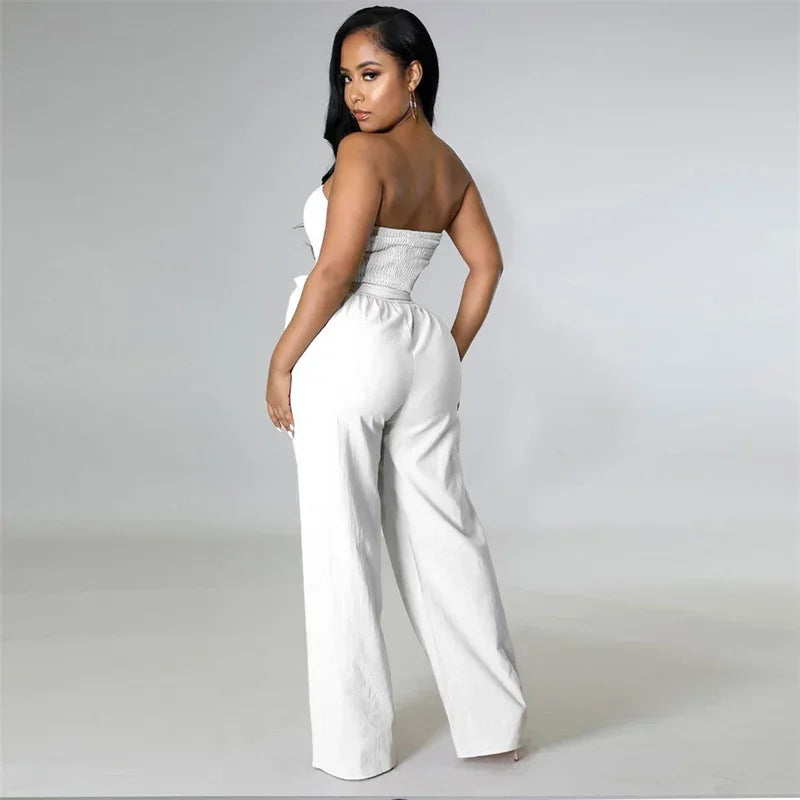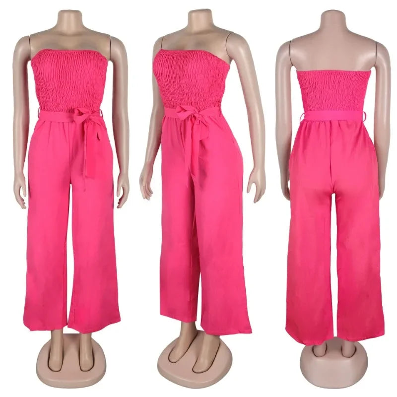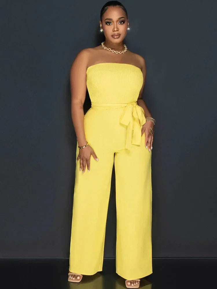Step into style with the Lace Delight Wide-Leg Jumpsuit, an exquisite addition to the ProLyf online clothing store. This strapless jumpsuit merges classic sophistication with contemporary flair, making it a perfect choice for fashion-forward women.