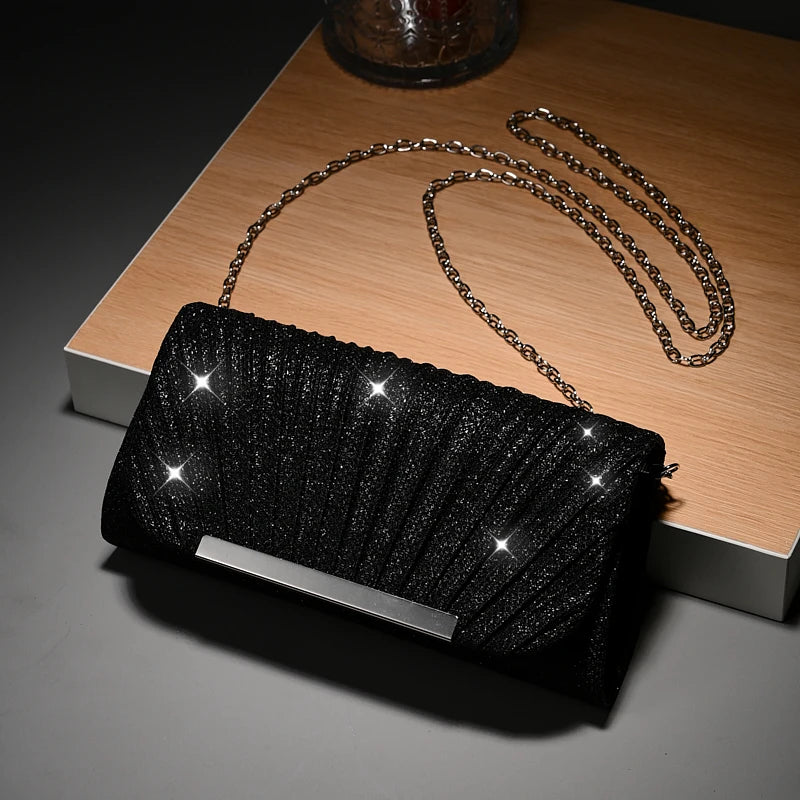Crafted with meticulous attention to detail, this shiny envelope clutch for weddings features an exquisite sequined finish that creates a mesmerizing sparkle effect. The ruched design adds texture and visual interest, while the classic envelope silhouette ensures versatility across multiple occasions. Whether you're attending a wedding ceremony, cocktail party, or formal gala, this chic party clutch for women elevates your ensemble with undeniable elegance.