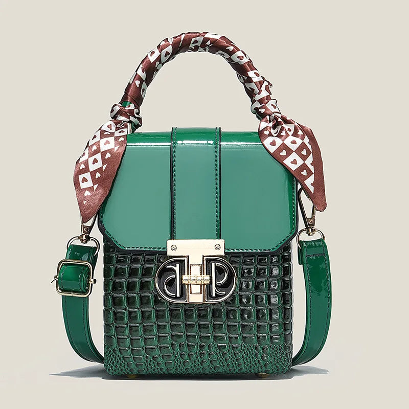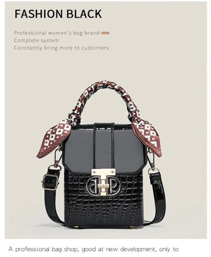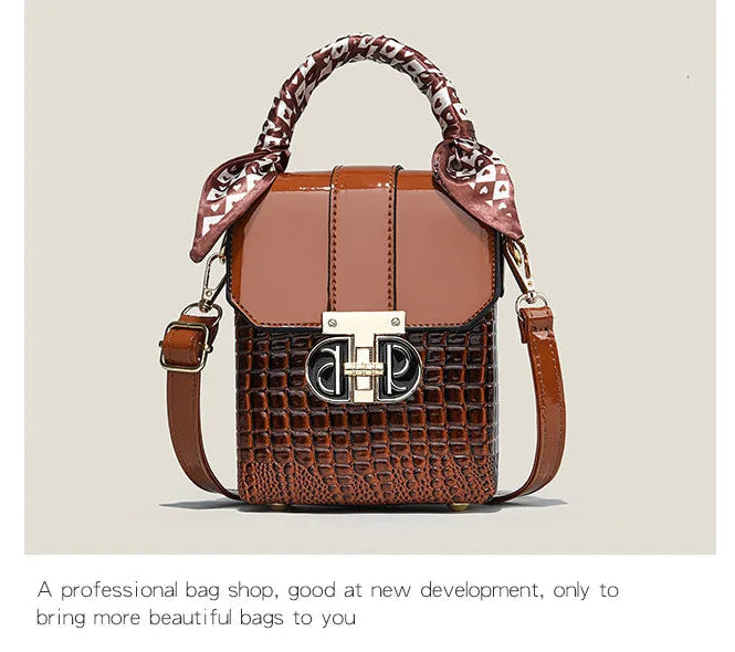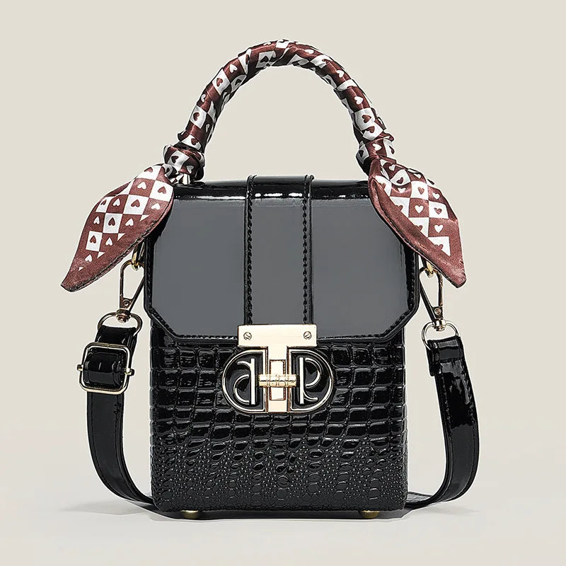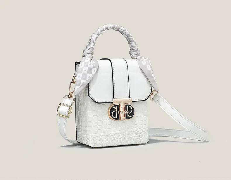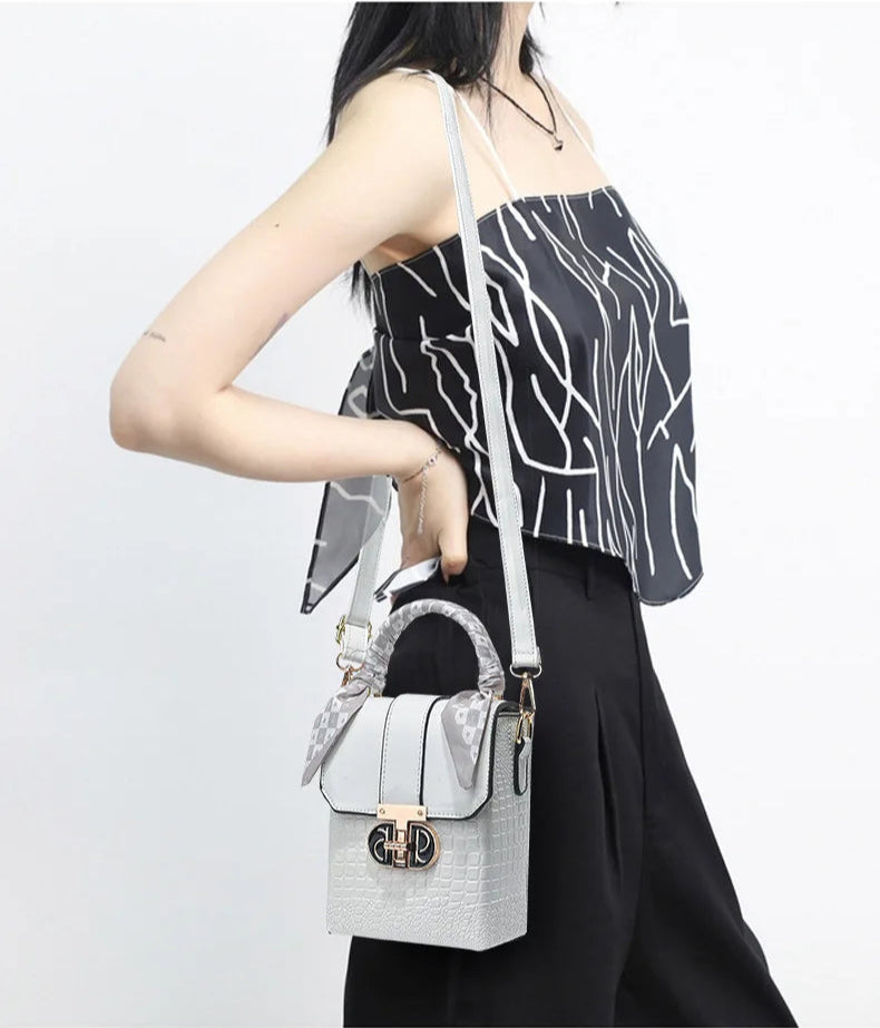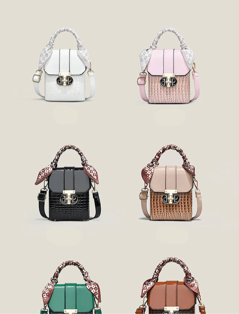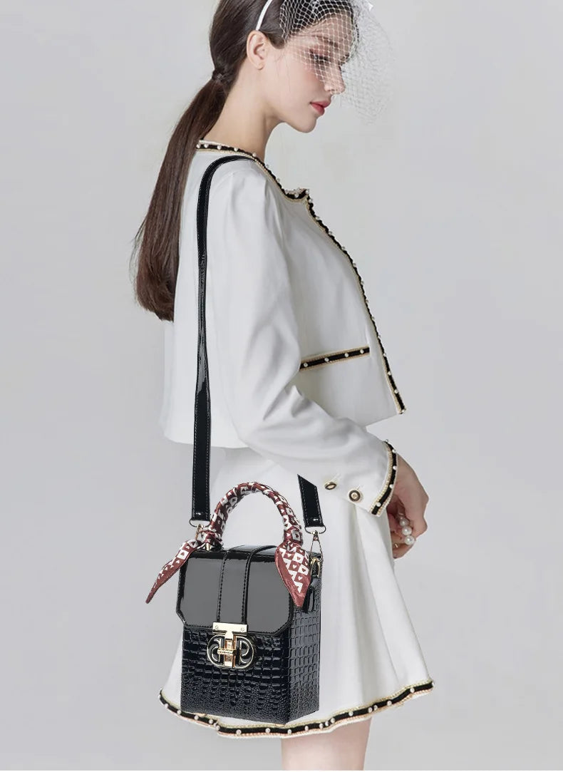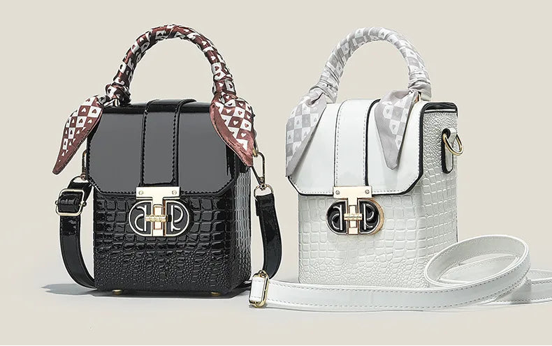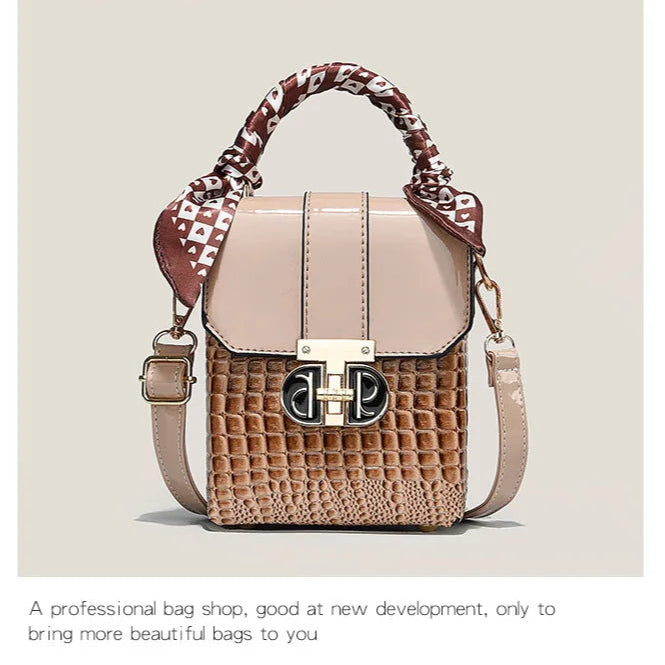 Elevate your everyday style with this stunning two-tone structured mini bag - the perfect fusion of sophistication and versatility that every fashion-forward woman needs. This women's small square bag transforms any outfit from ordinary to extraordinary with its chic geometric design and luxurious crocodile-textured finish.