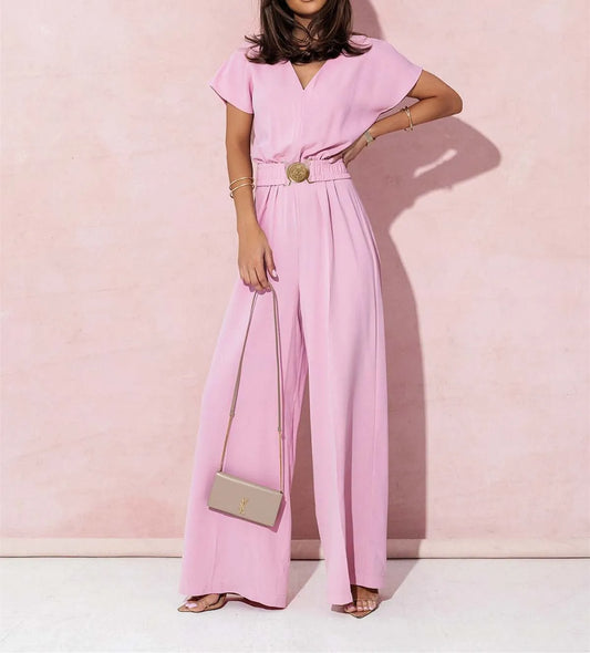 Women's Elegant V-Neck Wide Leg Jumpsuit