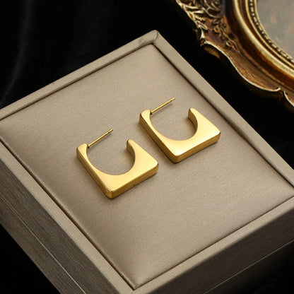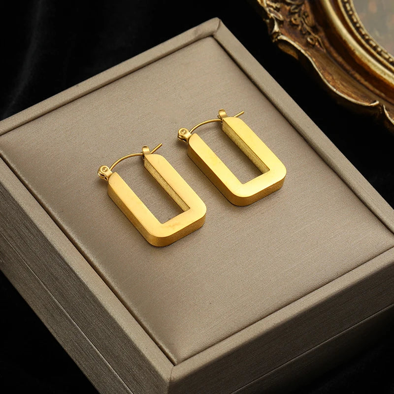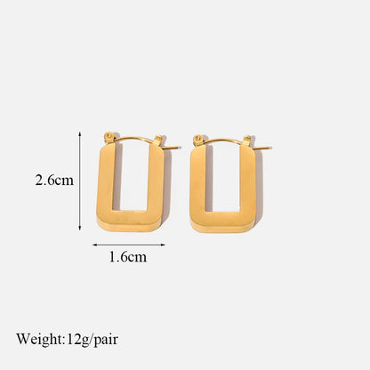 Each pair showcases eight distinct geometric glossy earrings fashion ideas - from classic chunky hoops to contemporary square silhouettes and sleek minimalist designs. The innovative stainless steel earrings construction ensures durability while maintaining the luxurious appearance of solid gold at a fraction of the cost.