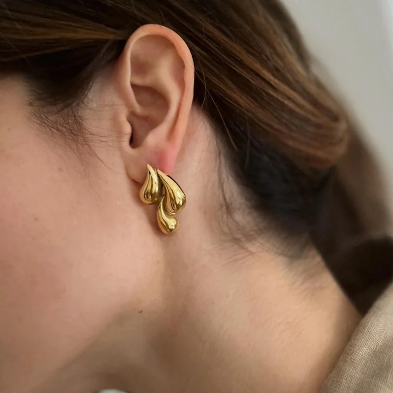 Discover elegance redefined with our Golden Waterdrop Earrings, a perfect blend of sophistication and sparkle that fits seamlessly into any wardrobe. Crafted with a distinctive three-drop design, these earrings feature a smooth, polished finish that captures the light and everyone’s attention.