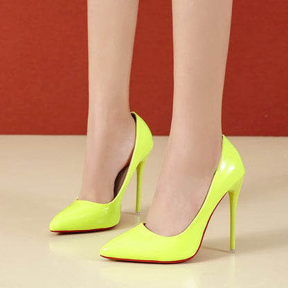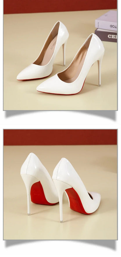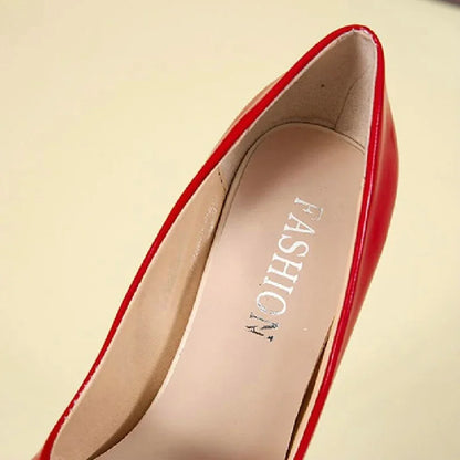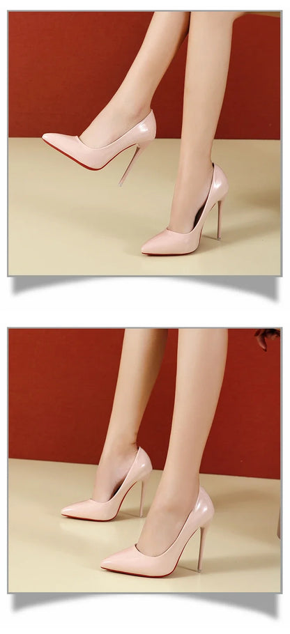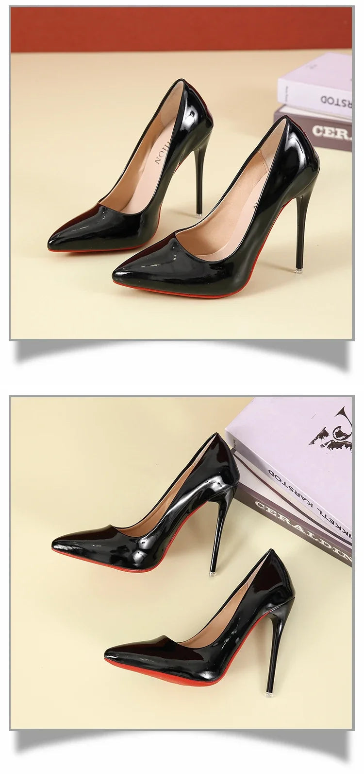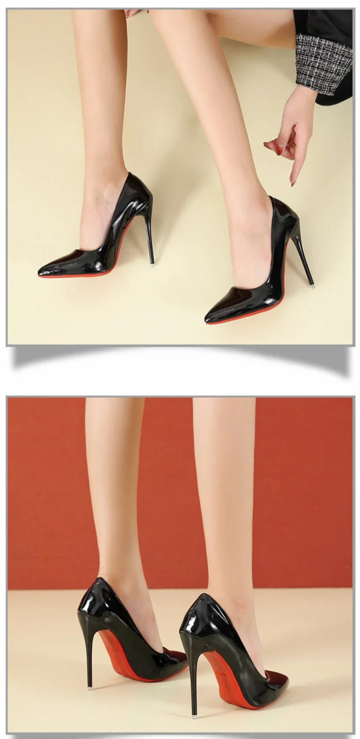 Designed to fit true to size, these affordable sexy high heels offer slip-on convenience without compromising style. The pointed toe accentuates your feet elegantly, adding refined charm to your outfit. Whether in classic black, versatile nude, or bold red, these patent leather stilettos with red sole perfectly complement your fashion-forward wardrobe.