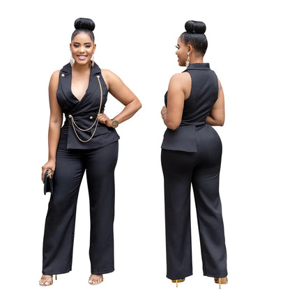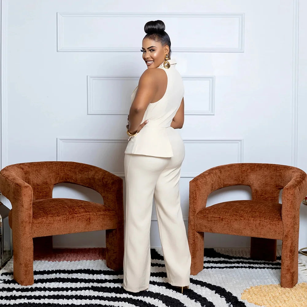 Step into the season with style with our "Chic Sleeveless Blazer Jumpsuit," a staple piece from Prolyf, your premier online clothing store. Designed for the fashion-forward, career-oriented woman, this jumpsuit blends sophistication with street savvy flair, making it a versatile addition to any wardrobe.