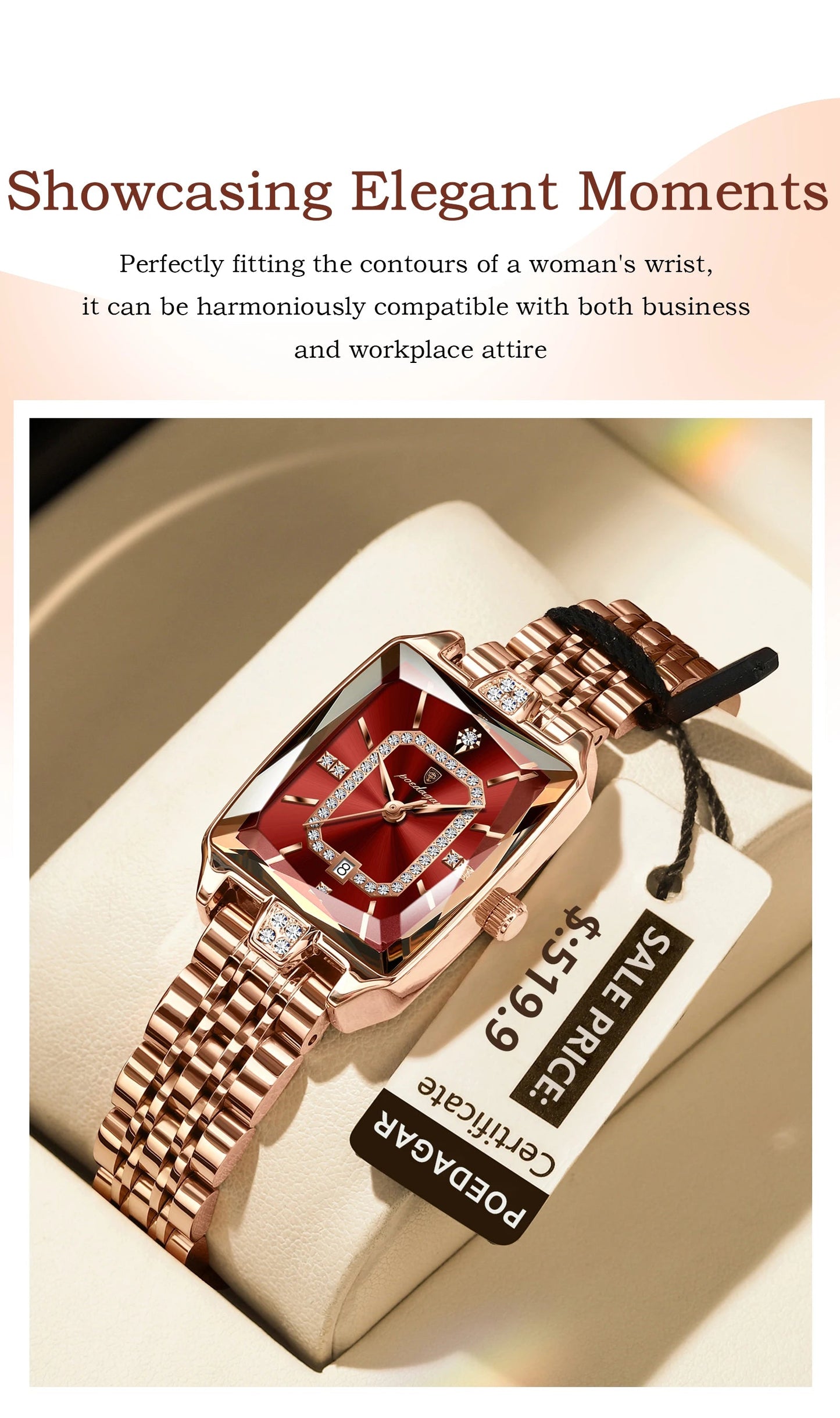 This versatile rectangle dial quartz watch for women elevates any ensemble: