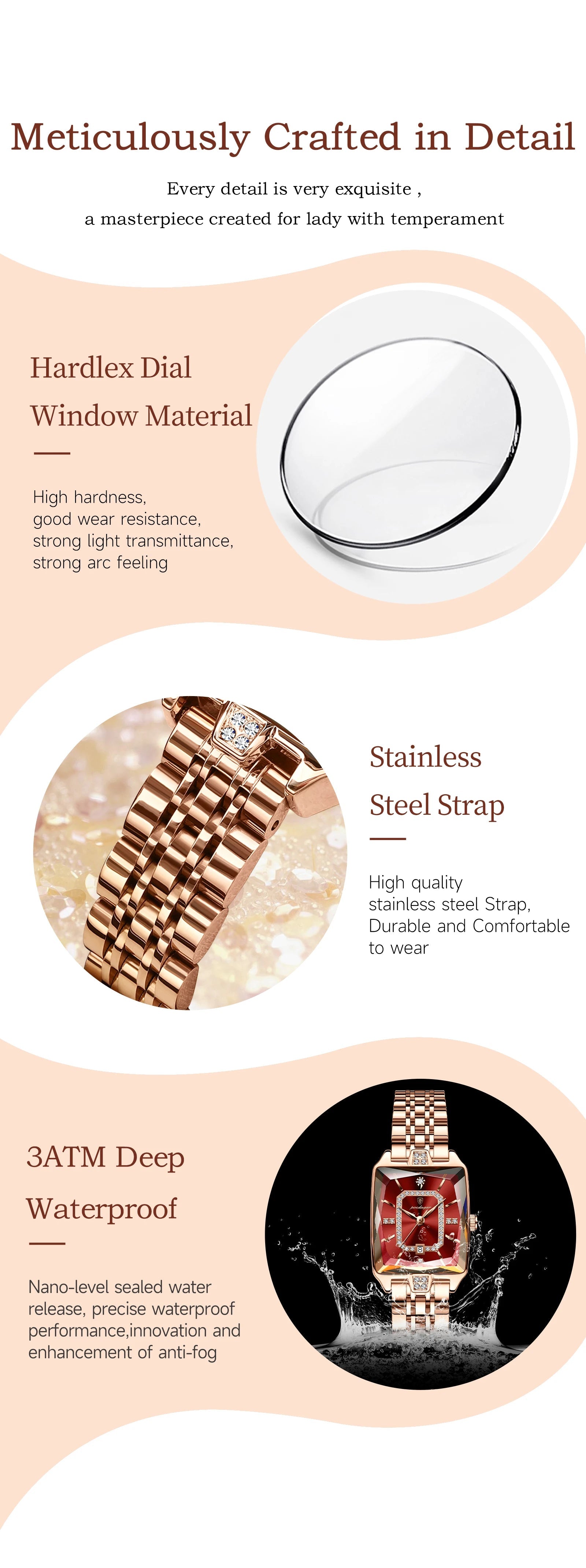 Whether you're commanding the boardroom, celebrating at a wedding, or enjoying a casual weekend brunch, this durable stainless steel women's watch adapts to every occasion with effortless grace. The distinctive rectangle dial showcases a mesmerizing interplay of colors - from rich emerald green to soft blush pink, deep sapphire blue to classic black - ensuring there's a perfect match for your unique style.