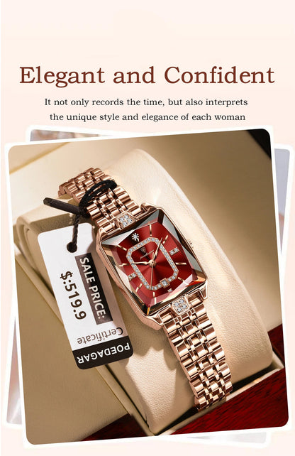 Transform every moment into a statement of elegance with this stylish women's dress watch with date display. Crafted for the modern woman who appreciates both beauty and functionality, this elegant women's rose gold rectangle watch seamlessly blends luxury aesthetics with everyday practicality.