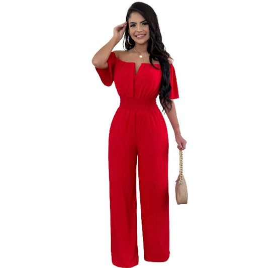 Women's Elegant V-Neck Wide Leg Jumpsuit
