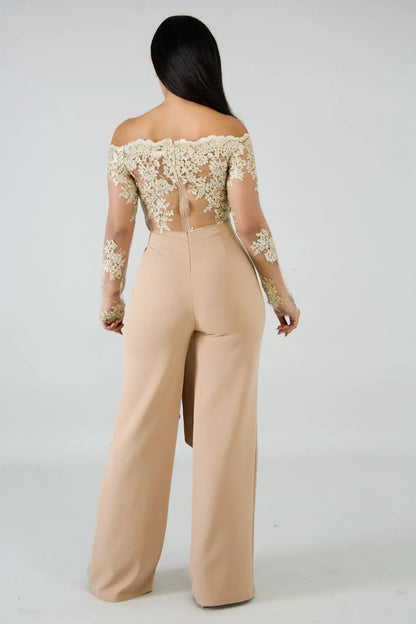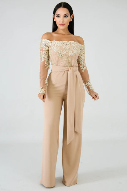 The Long Sleeve Off Shoulder Dressy Jumpsuit features:-