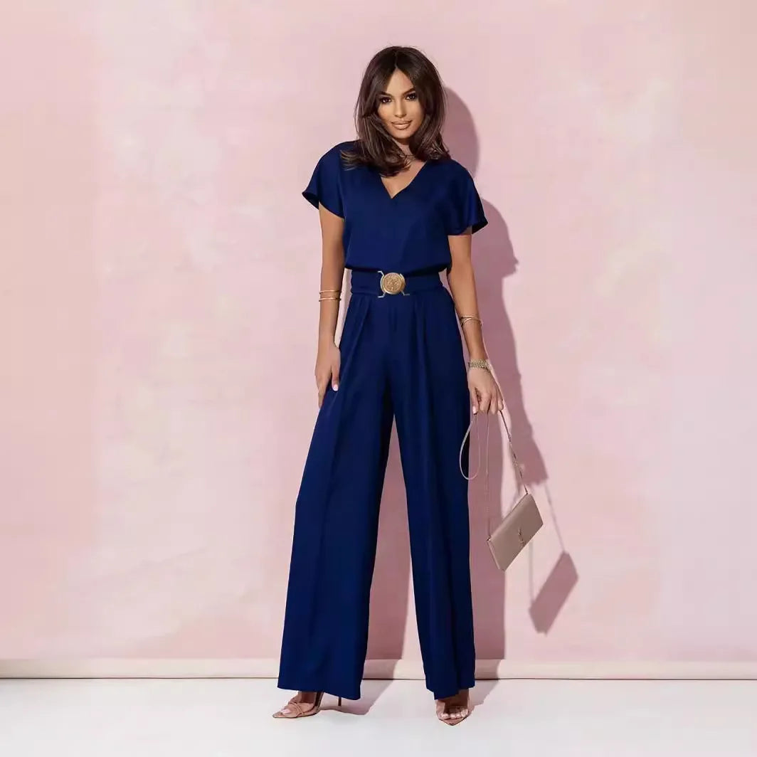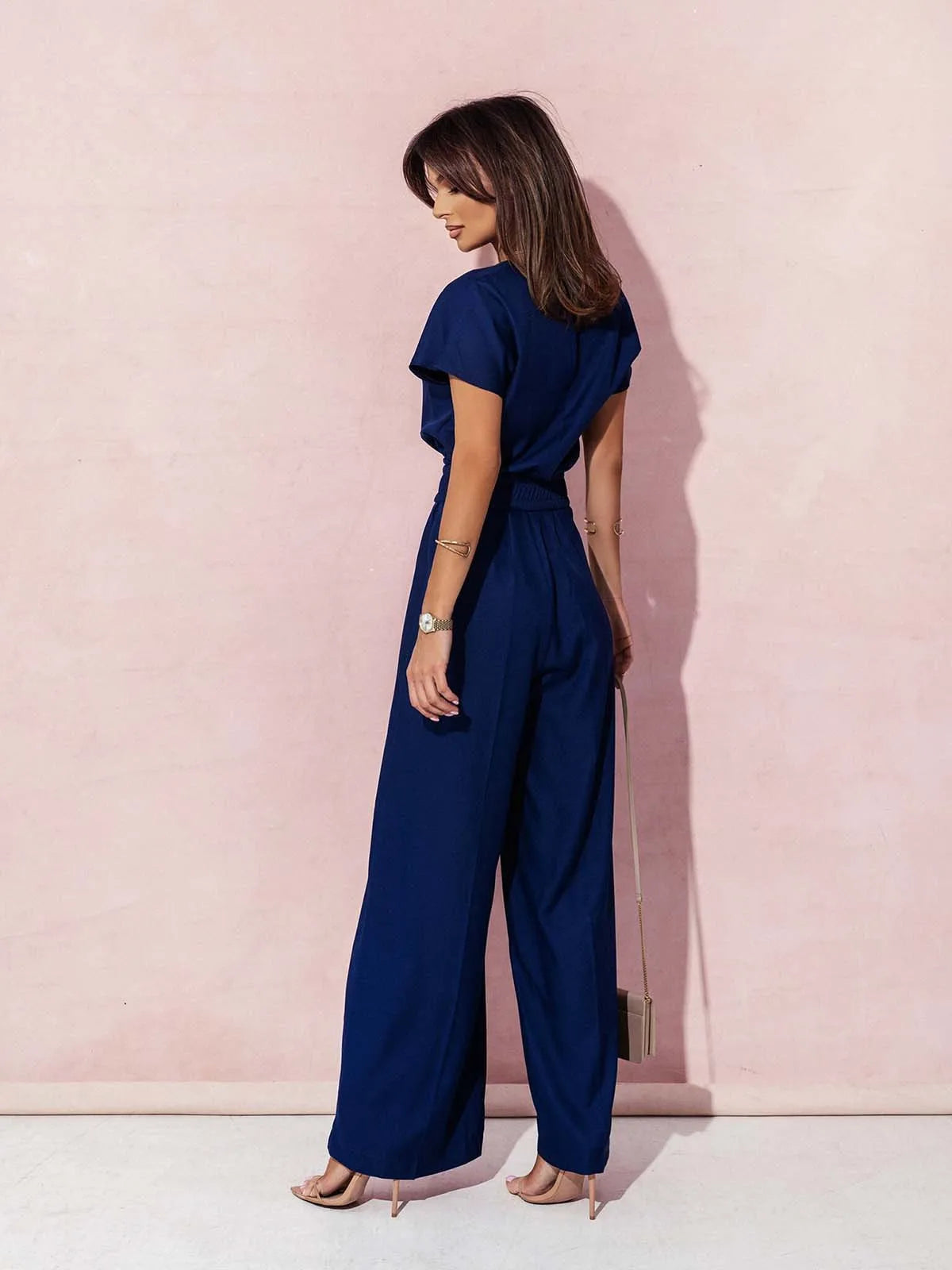 Women's Elegant V-Neck Wide Leg Jumpsuit
