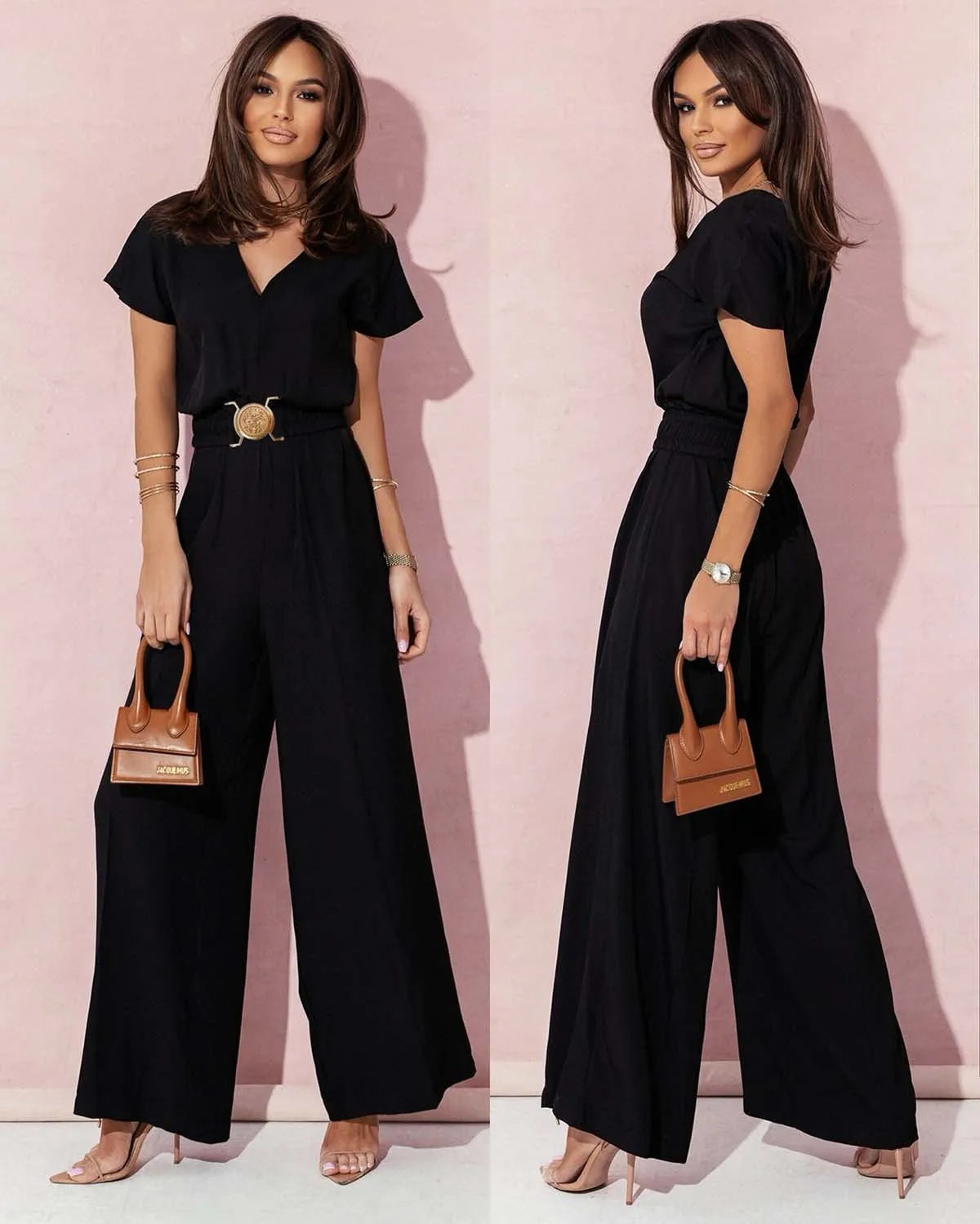 Women's Elegant V-Neck Wide Leg Jumpsuit - Effortless Elegance, Endless Versatility