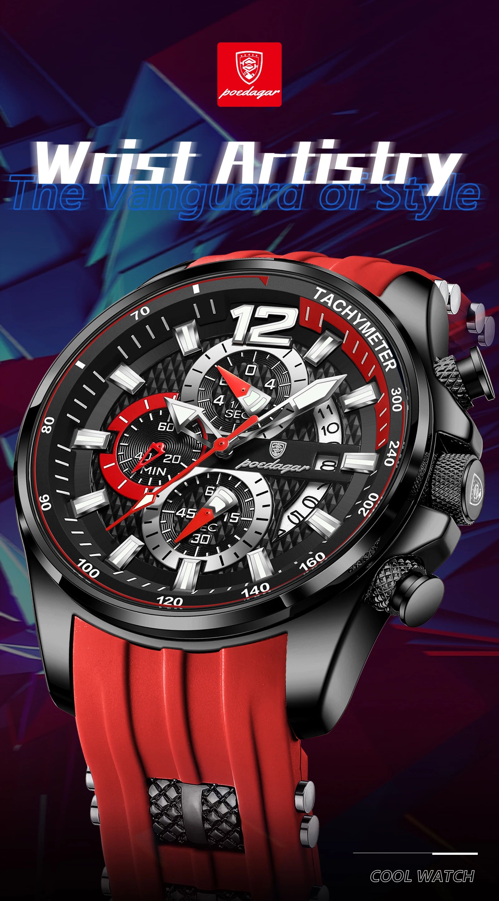 • Multi-Functional: Includes chronograph and date functions.