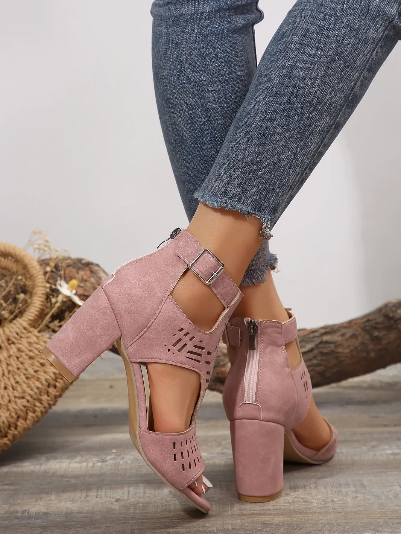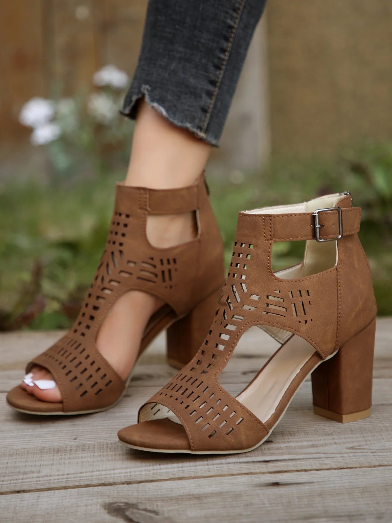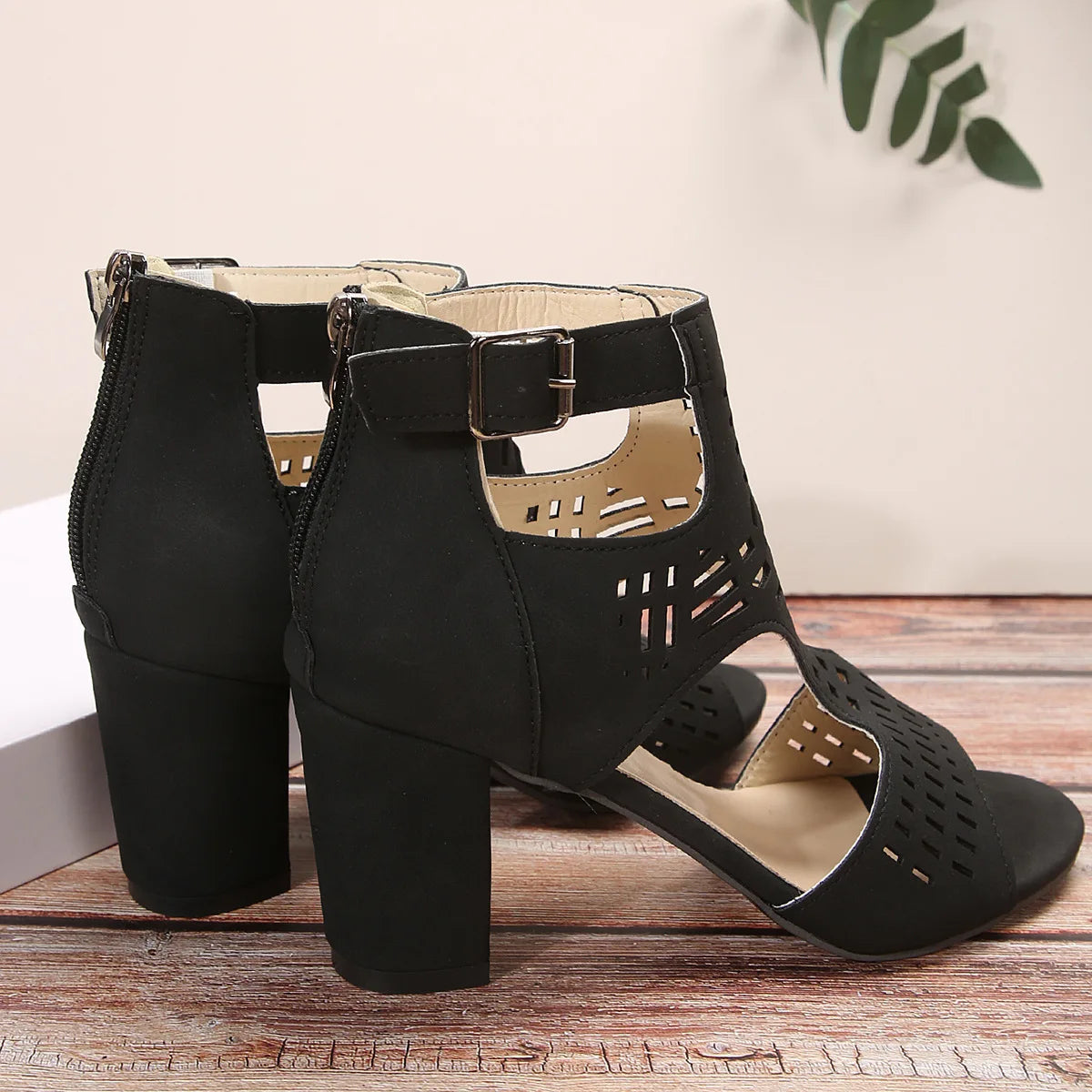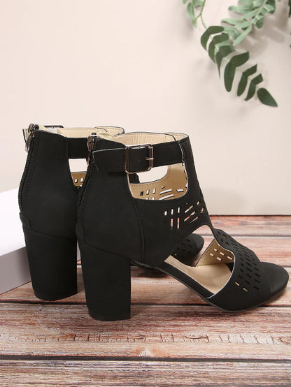 Chic Zipper Block Heel Sandals-Elevate Every Step, Effortlessly