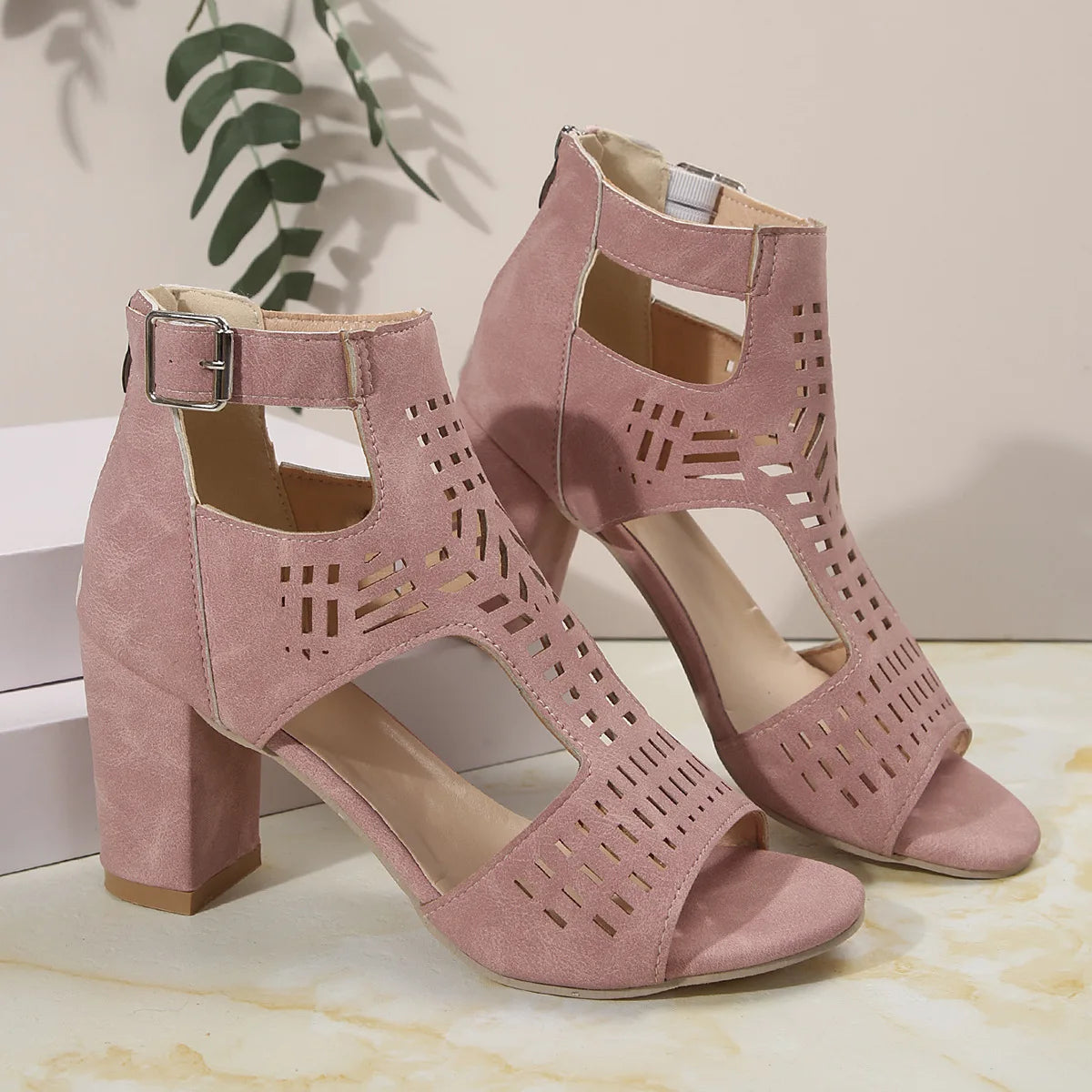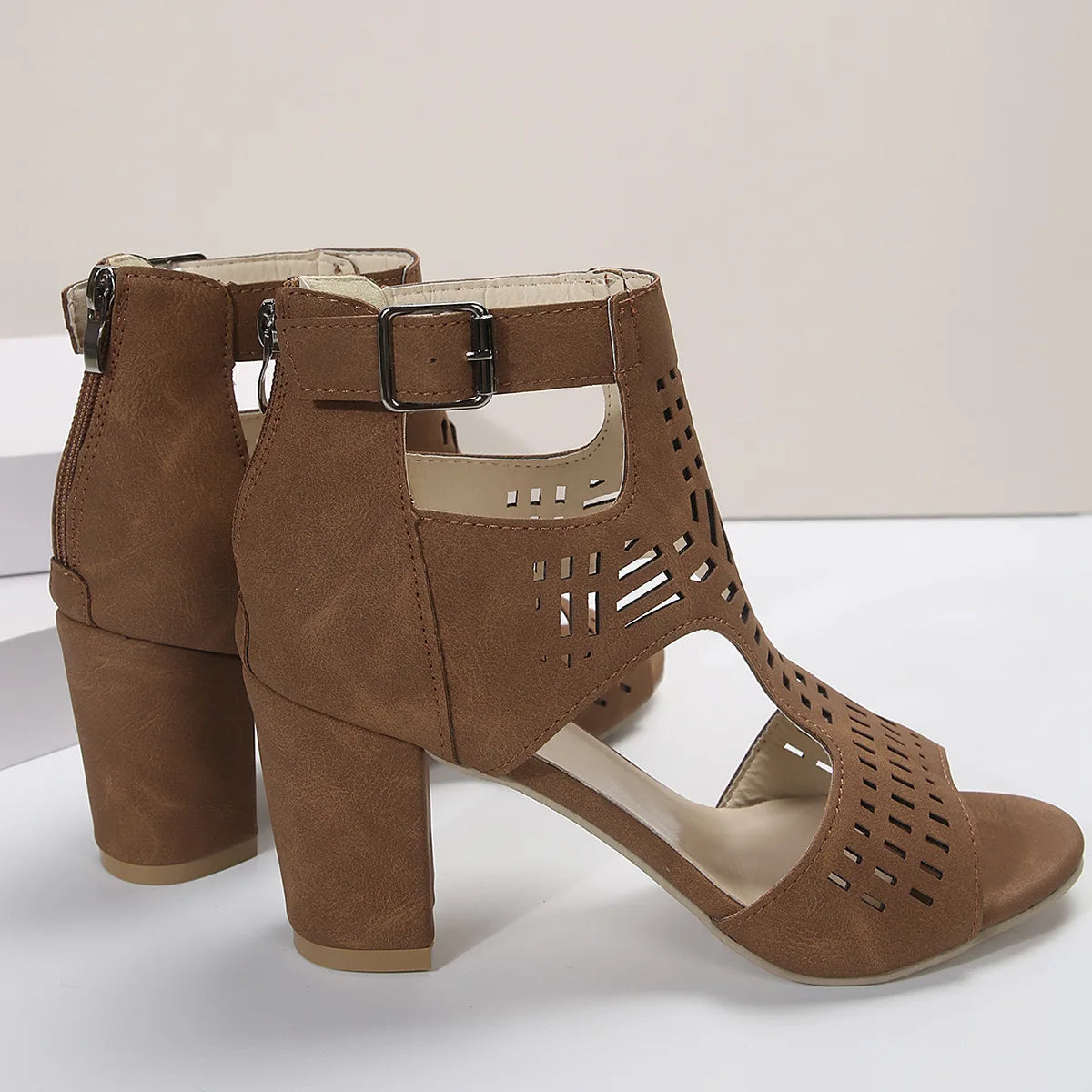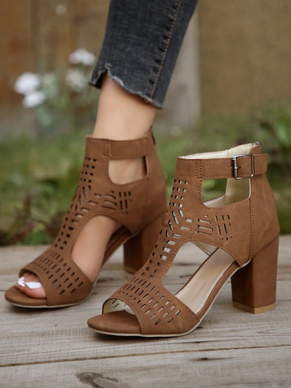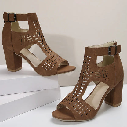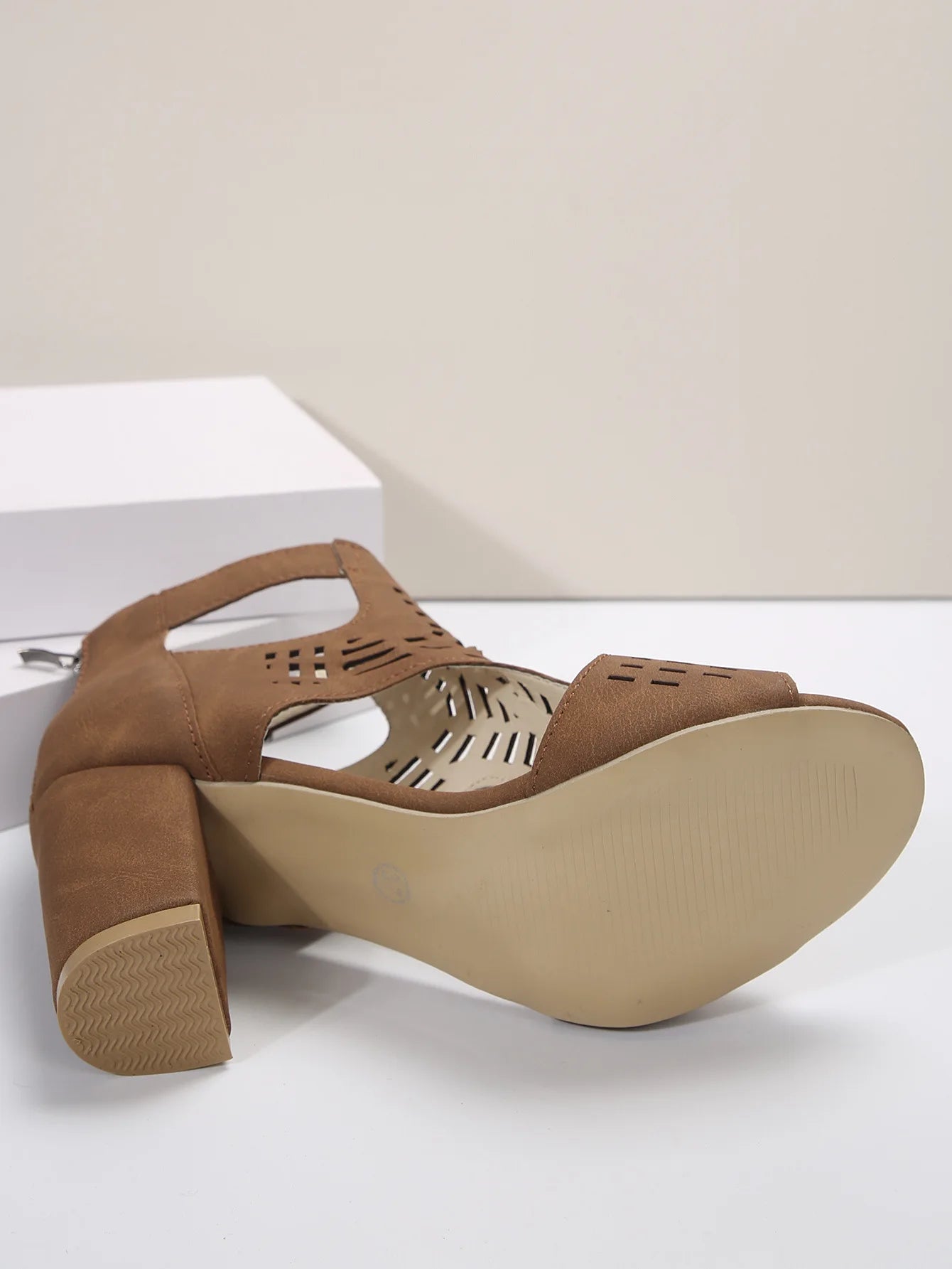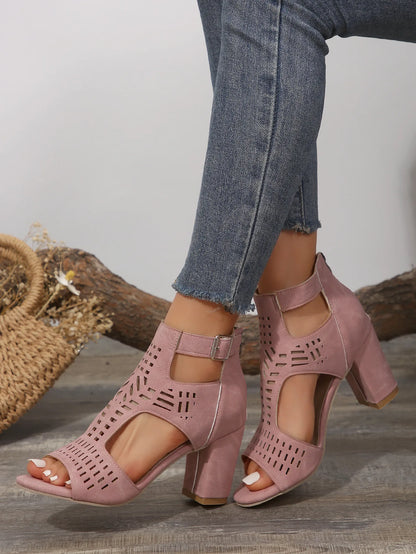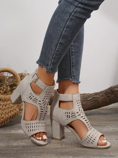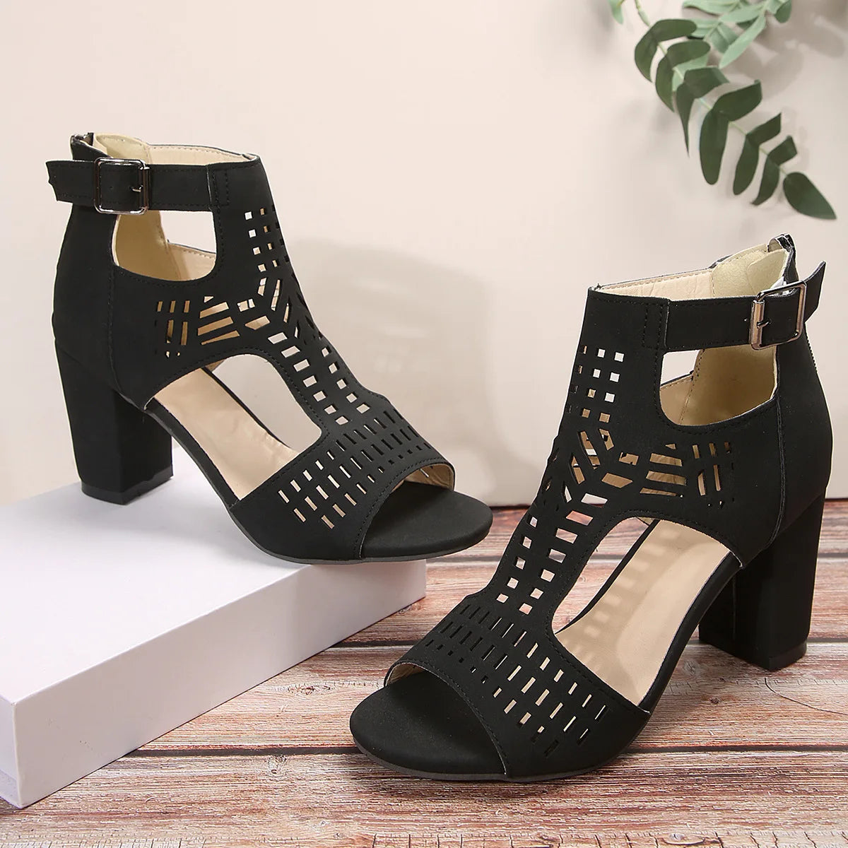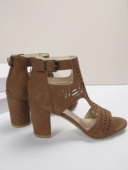 Step into sophistication with our Chic Zipper Block Heel Sandals - the perfect balance of comfort and style for the modern woman. These stunning open-toe sandals feature an elegant diamond cutout pattern and convenient back zipper design that makes them as practical as they are fashionable. The stable 8cm (3.15") block heel provides all-day support while the premium PU upper offers durability without sacrificing elegance.